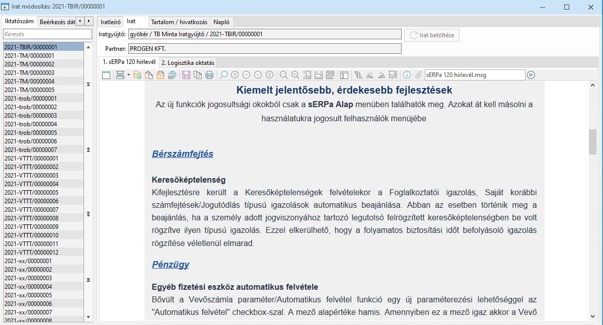 Szeretnénk tájékoztatni Önöket az Iratkezelés modulunkat érintő átalakítás során elkészült fejlesztésekről.