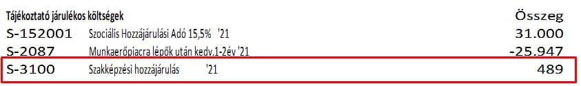 A 2108-as bevallásban szakképzési hozzájárulás alapot csökkentő tételként számolt (30. sor összegét csökkentő) szakképzési hozzájárulás kedvezmény.