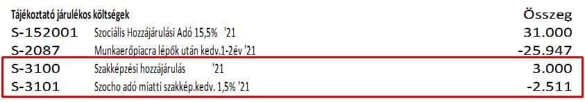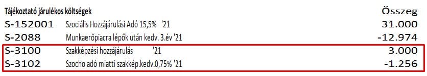 Az Szkt. 2021. július 1-jétől hatályos 107. § (3b) bekezdése értelmében, ha a szakképzési hozzájárulásra kötelezettet a szociális hozzájárulási adó tekintetében kedvezmény illeti meg, a bruttó kötelezettség csökkenthető