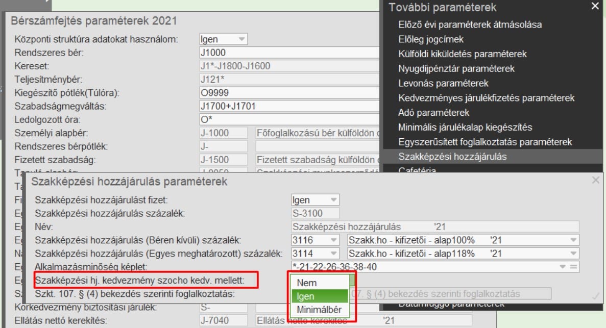 Fentiek alapján egy háromállású kapcsoló készült a programban a Számfejtés paraméterek / Szakképzési hozzájárulás paraméterek menüpontban: