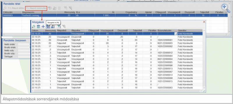 A rendelésmozgásokat tartalmazó állományban a kiinduló állapot is helyet kapott Ezzel áttekinthetőbbé vált a mozgásokat tartalmazó állomány, ami például riport készítések esetén jelenthet könnyebbséget
