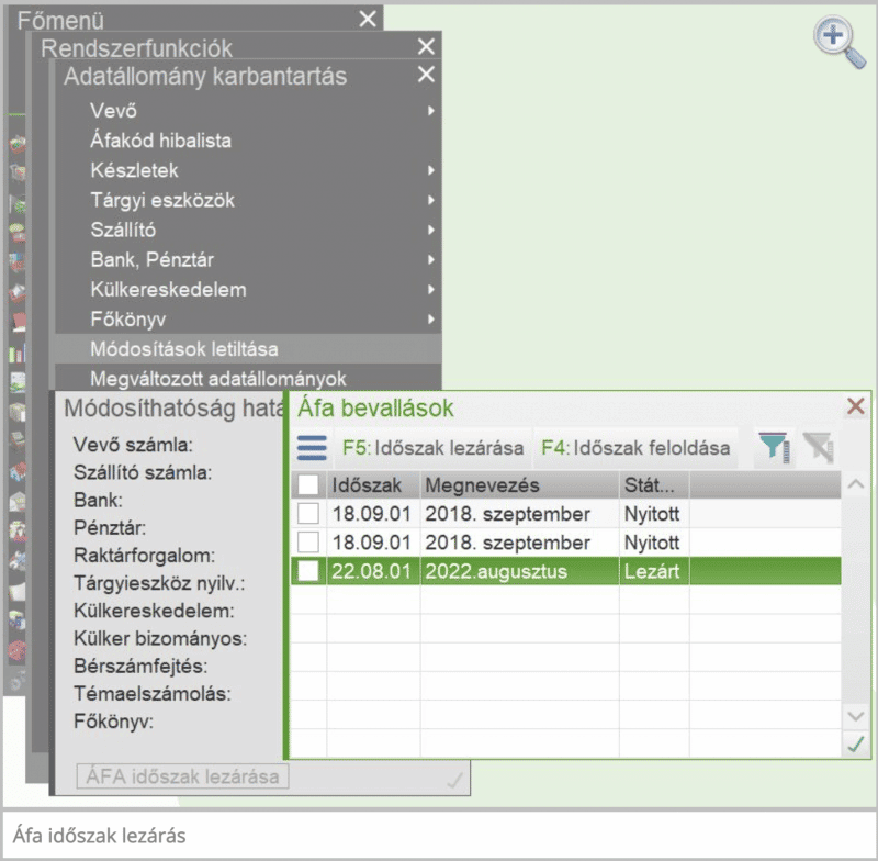 ÁFA időszak lezárás