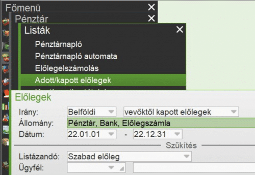 Ezentúl az Adott/kapott előlegek listában lekérhetőek az új típusú előlegek is, listázva a felhasznált és a még szabad, felhasználható részt.