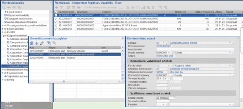 A Raktár-irányítási rendszer alkalmassá vált Bolthálózatok komissióutasításainak egyszerű kezelésére.
