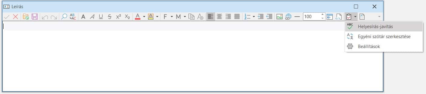 A bővített funkcionalitásából szeretnénk kiemelni a helyesírás-ellenőrzést és a szövegfelismerést. Az új lehetőségeknek nagy hasznát vehetik a felhasználók például egy Ügyfél vagy Termék leírás, Automatikus e-mail készítésénél, vagy épp az Eseménykezelésben egy Akta esemény megírásánál.
