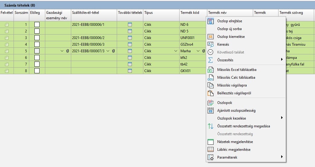 A funkció Termék táblázatát bővítettük három új oszloppal, mely a belső rendelések foglalásait veszi figyelembe. Az oszlopok célja, hogy a Belső rendelések esetén lássuk, hogy egy-egy rendeléstétel mekkora mennyiségét foglalja vevő rendelés és mekkora részét egyéb készlet feltöltés céljából vették fel a rendelésre. Így megalapozottabb döntést hozhat a beszerző azok tovább rendeléséről.